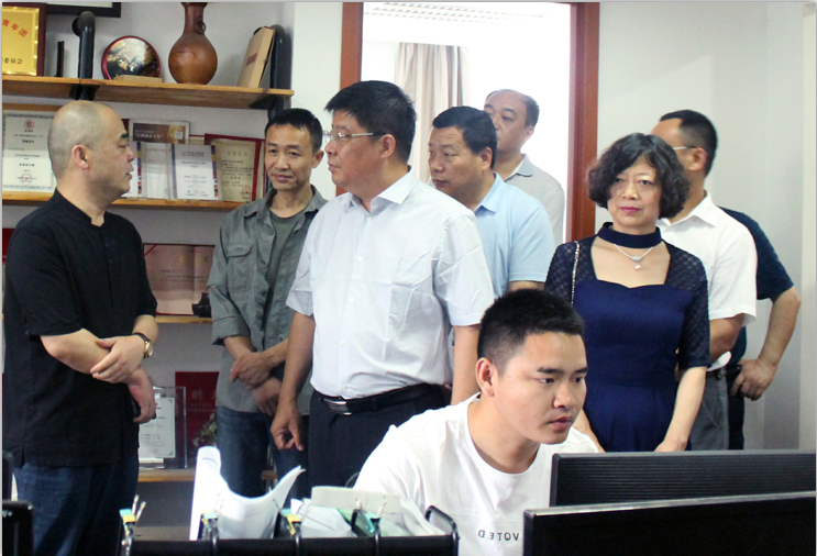在调研中,李伟副总经理与刘文毅院长带领张国昌副县长一行参观走访设计师产业园,并向来访人员讲解了设计师产业园的发展模式和总体概况,让大家对设计师产业园有了大致了解。之后张国昌副县长认真听取了钟极传媒负责人钟洛洲和意大利迈致设计负责人周前进对自己工作室的介绍,并向设计师创业者们询问了解入驻园区的优惠政策和平台优势。