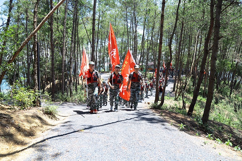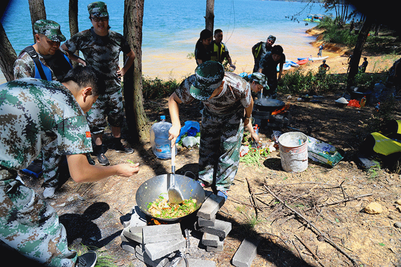 此次拓训围绕“团队、沟通、协作、突破”为主题展开,全体参训人员分成多个小分队进行,每个队有队长、副队长、安全员等角色,各小组自主制作队旗、制定口号及队歌,相互比赛、相互竞争。百艇竞渡、扎伐泅渡、埋锅造饭、篝火晚会、环岛穿越、猎人意志、共绘蓝图……精彩纷呈、高潮迭起。