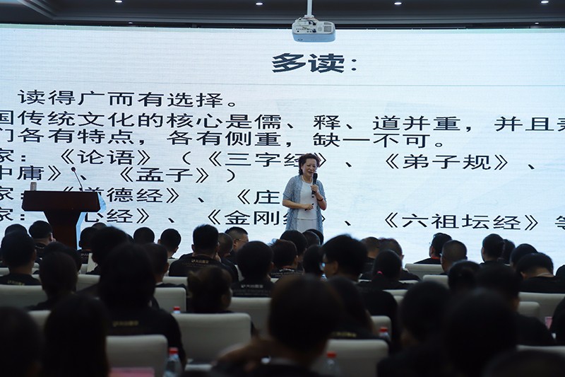 对员工个人而言,学习国学,可以改变认识世界的眼光与方式,有助于运用中华文化的核心价值与智慧改造自己,脱胎换骨;对于家庭,能够落实在家规、家风的建立,良好习性的养成上……讲座现场气氛愉悦,让在座成员共享了一场国学盛宴。