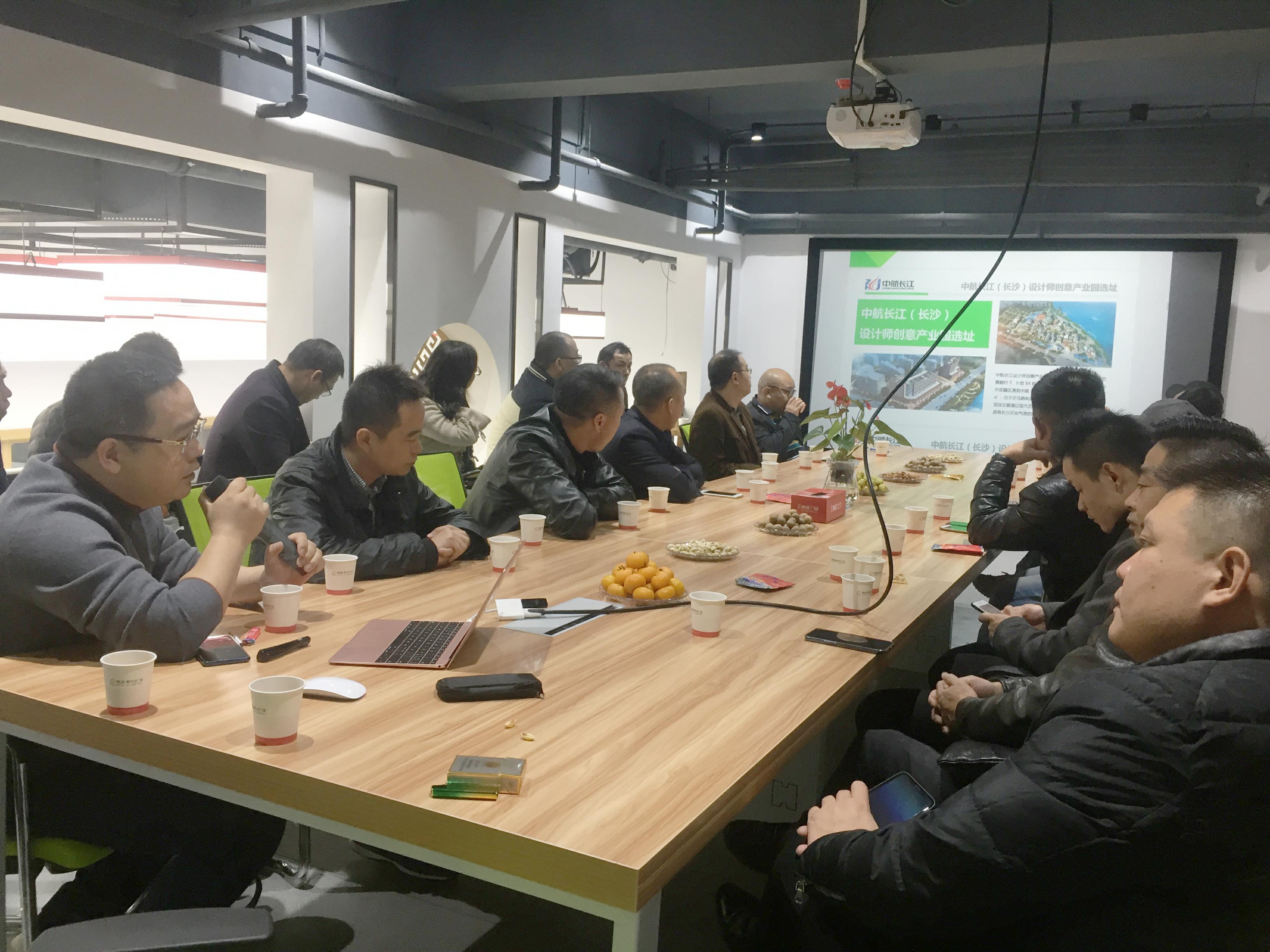 在会议过程中,李涛董事长说自己在长沙学习生活了七年,算是半个长沙人,所以这次回到长沙,希望自己能够为长沙的发展尽一份力,将中航长江设计师产业园(以下简称“设计师产业园”)这一创新平台引入长沙。随后,李涛董事长详细介绍了中航长江和设计师产业园的发展概况和历史,并向大家展示了长沙设计师产业园的发展规划,指出希望长沙设计师产业园能够通过现代艺术建筑设计与长沙本土文化相结合,打造具有长沙文化气息的建筑工程行业全产业链创业平台园区,为建筑设计企业、建筑施工企业、建筑材料企业和金融投资机构构造互助互利的共享生态圈。听此一言,大家欣喜不已。