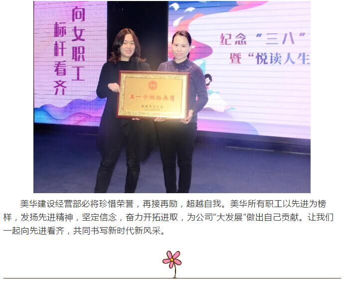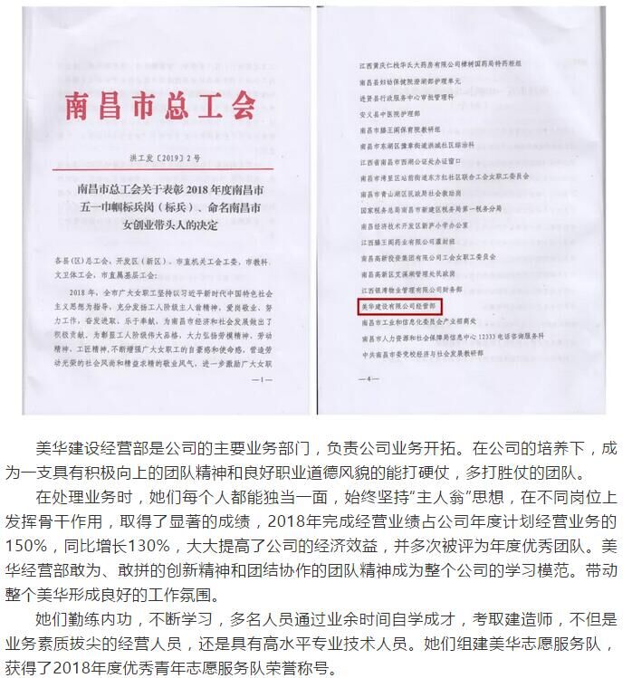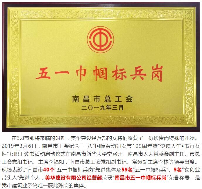 巾帼何让须眉——美华建设经营部荣获“南昌市五一巾帼标兵岗”称号