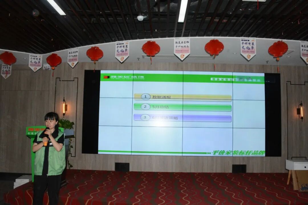 家电部经理郑佳星在通报5月业主数据后,详细介绍6月活动筹备情况;