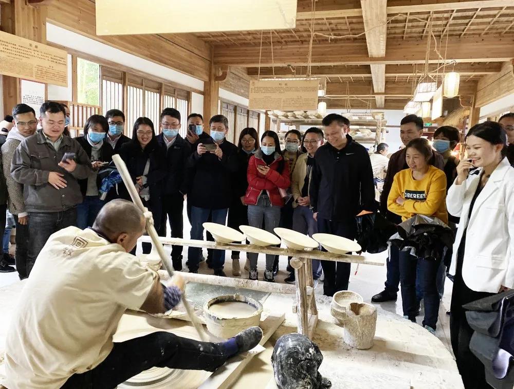 21日下午,参观皇窑陶瓷艺术博物馆,大家身临其境景德镇制瓷工艺。制陶大师现场制作拉坯绝活、年过半百的陶瓷绘画师的专注着色、馆内展示的各种陶瓷半成品,处处体现了能工巧匠在平凡中塑造精品,不禁感叹陶瓷从业者的工匠风范。